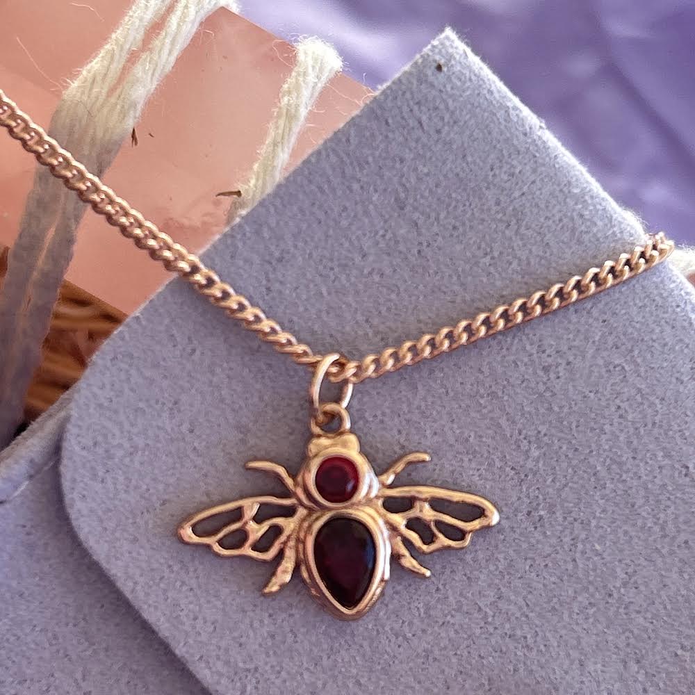Discover the beauty of Rubee, the stunning bee pendant embellished with two ruby red cz stones and crafted in 14kt Rose gold and 925 Sterling Silver. Wear it alone or layer it with other pieces to elevate your style. Complete with a 60cm rose gold Cuban chain, this versatile pendant can also be removed to suit your preferences.